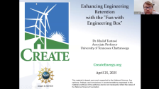 This webinar from the CREATE National Energy Center features a presentation by Khalid Tantawi, professor at the University of Tennessee at Chattanooga. Tantawi shares an overview of the Fun With Engineering Box, a hands-on toolkit designed to use interactive objects to bridge theoretical concepts...