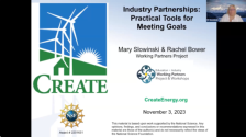 This video from the CREATE National Energy Center features a presentation on education-industry partnerships by Mary Slowinski and Rachael Bower, PI (Principal Investigator) and Co-PI of the Working Partners Project and Workshops. This presentation focuses on the role of education-industry...