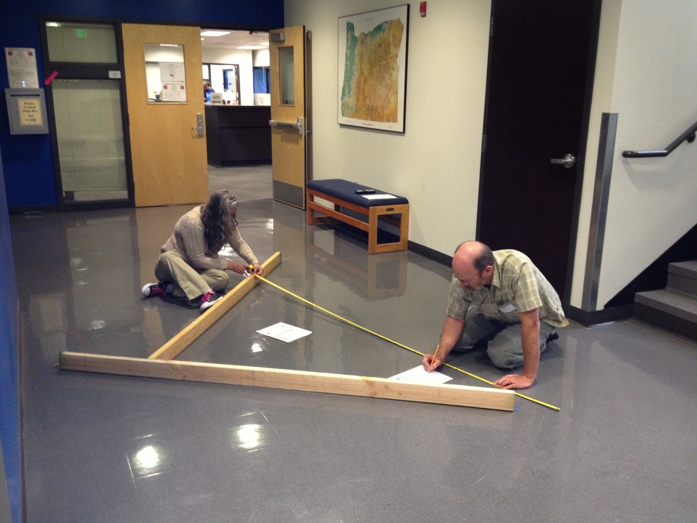 Summer math institute participants apply the Pythagorean Theorem to a concrete forming problem.
