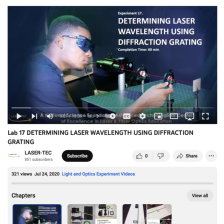 This video from Laser-Tec is part of a series of light and optics experiments. In this lab, participants determine laser wavelength using diffraction grating. Participants learn about white and monochromatic light diffraction and calculate the wavelength of a HeNe laser. Equipment includes a red...