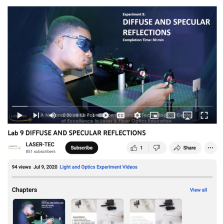 This video from Laser-Tec is part of a series of light and optics experiments. In this lab, participants explore the difference between specular and diffuse reflections, identify skin and ocular hazards associated with the specular reflections of a laser beam, and identify protection and safety...