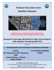 This 6-page resource, from the Geospatial Center of the CUNY CREST Institute, includes an application for the fall 2020 high school workshop Feature Extraction from Satellite Datasets. This workshop was intended to "expose and train participants in feature extraction techniques using industry...