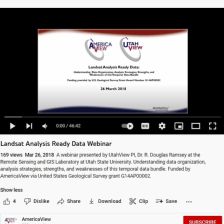 This video from AmericaView explores Landsat Analysis Ready Data (ARD). In the video, R. Douglas Ramsey from UtahView at the Remote Sensing and GIS Laboratory at Utah State University provides a general introduction to Landsat ARD and discusses data organization, data products, analysis strategies,...