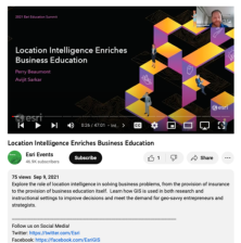 This video, from the 2021 Esri Education Summit, provides two presentations that explore the role of location intelligence in solving business problems. Viewers learn how GIS is used in both research and instructional settings to improve decisions and meet the demand for entrepreneurs and...