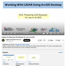 This video, provided by Virginia Geospatial Extension, is part of a series of 16 tutorial videos on using Lidar with ArcGIS Desktop. This tutorial demonstrates how to prepare LAS-formatted Lidar datasets for use in ArcGIS Desktop. This video runs 05:21 minutes in length. The other videos in the...