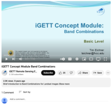 This video, from the Integrated Geospatial Education and Technology Training Project (iGETT), introduces band combinations for Landsat imagery. The presentation gives an overview of reflected light as perceived by the eye and by censors, and how representing wavelength rages with various bands...