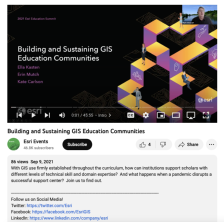 This video, from the 2021 Esri Education Summit, covers building and sustaining GIS education communities. This session discussed how institutions support scholars with different levels of technical skill and domain expertise, and what happens when a pandemic disrupts a successful support...