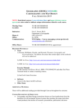These resources include a 5-page syllabus and a 2-page course table map for the Cartography and Map Design course taught at Weber State University. "This course is designed to introduce the field, topics, processes, terms, tools, and techniques of cartography to a motivated student who has completed...