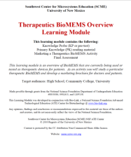 This learning module, from Support Center for Microsystems Education (SCME), covers major developments and applications of biological microelectromechanical systems (BioMEMS). "There are three activities included that provide further exploration of these applications, how they...