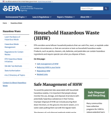 The U.S. Environmental Protection Agency's site on household hazardous waste stresses the importance of household waste awareness. Household waste may come from single or multiple family dwellings, hotels and motels, and other types of residences. This site answers frequently asked questions about...