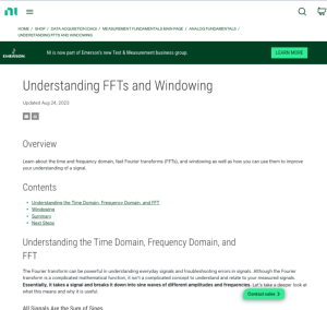 This paper is provided by National Instruments and covers the theory of using window functions to improve frequency measurements. The tutorial includes a table of contents and includes the following sections: Understanding the Time Domain, Frequency Domain, and FFT; Windowing; Summary; and Additional Instrumentation Resources. Users must register for a free account to download this resource.