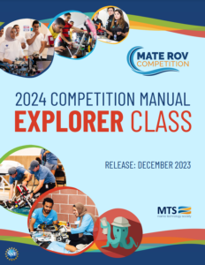 This 78-page manual, from the Marine Advanced Technology Education Center, was provided to those competing in the Explorer Class at the MATE ROV (Remotely Operated Vehicle) 2024 competition. Every year, the "competition challenges students to build a ROV to tackle tasks based on the real world." The competition is divided into the following competition classes: Explorer, Ranger, Pioneer, and Navigator, and Scout. These classes are "based on the level of complexity required to build the vehicle." For 2024, participants of each competition class were challenged to design and build ROVs to complete the following four tasks: OOI: Coastal Pioneer Array, SMART Cables for Ocean Observing, From the Red Sea to Tennessee, MATE Floats!