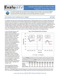 This collection of resources, provided by EvaluATE: Evaluation Resource Center for Advanced Technological Education, includes a briefing paper and three informational sheets covering changes in different aspects of the Advanced Technological Educaiton (ATE) program overtime using data from the annual surveys conducted on ATE grantees. The 6-page briefing paper describes the participation of women at various levels in ATE programs from the years 2000 to 2010. The three informational sheets feature tables demonstrating data around ATE program improvement, professional development, and materials development from 2006 to 2011.