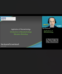 This webinar, published by the Nanotechnology Applications and Career Knowledge Support (NACK) Center at Pennsylvania State University, focuses on applications of nanotechnology, particularly in nanomedicine and nanobiology. After an introduction to the various application areas of nanotechnology, Jared Ashcroft from Pasadena City College goes into detail on nanotechnology's impact in medicine and biology. Covered are topics such as nanoparticle-biconjugates and the use of nanotechnology in COVID-19 vaccines. Additionally, examples of nanotechnology in everyday objects, such as tires and lights, is discussed.