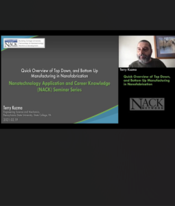 This webinar, published by the Nanotechnology Applications and Career Knowledge Support (NACK) Center at Pennsylvania State University, provides an overview of different manufacturing approaches on the nanoscale. During the webinar, Terry Kuzma from Pennsylvania State University defines both top down and bottom up manufacturing and gives examples of top down and bottom up manufacturing used in electronics and biomaterials.