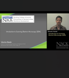 This video, published by the Nanotechnology Applications and Career Knowledge Support (NACK) Center at Pennsylvania State University, provides an introduction to scanning electron microscopy (SEM). During the video, Sebastien Maeder from Pennsylvania State University introduces SEM, its primary goals, and describes in detail the critical components of SEM and the major requirements and considerations for SEM operation.