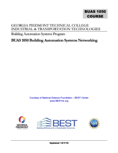 BUAS 1050: Networking is one of nine courses in the Building Automation Systems Technician program. This 18-page instructor guide provides an overview of the course, which serves as an introduction to the fundamentals of data transmission various media types. The class helps students prepare for the CompTia's Network+ Certification. Topics covered during the course include network fundamentals, standards, OSI model, IP protocol, network signal transmission, media, protocols, hardware, typical BAS networks, subnetworks, and more.