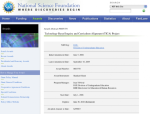Technology-Based Inquiry and Curriculum Alignment (TICA) Project